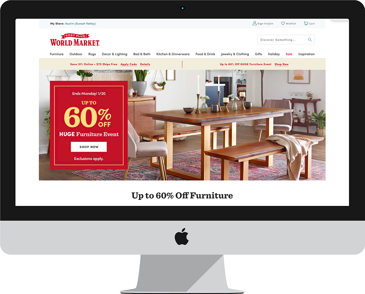 Responsible for the art direction of World Market’s Small Spaces campaign. We captured video and photography content over two days on-location which was used in sponsored ad units on social, worldmarket.com, in-store, e-mail campaigns and printed promotional mailers.